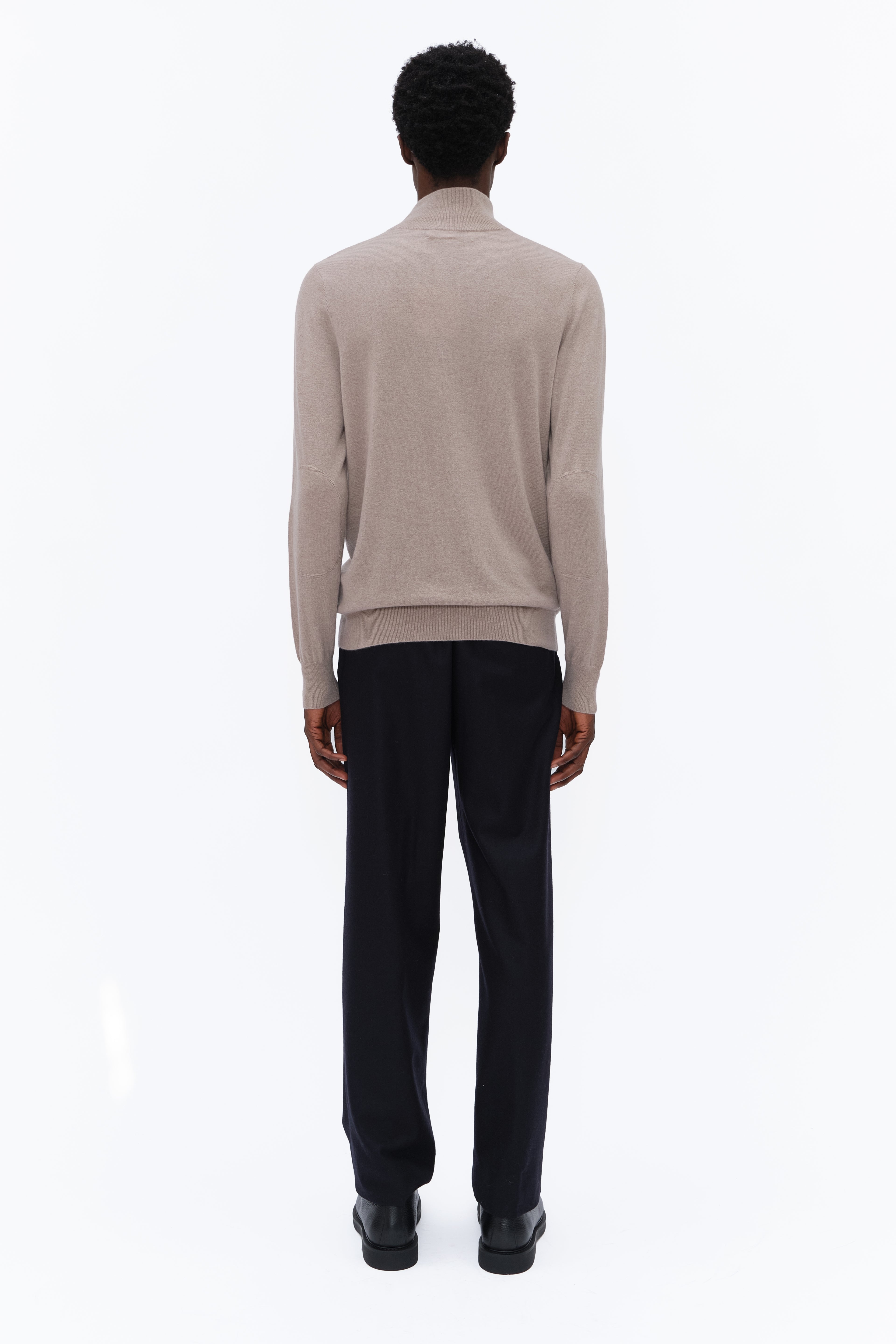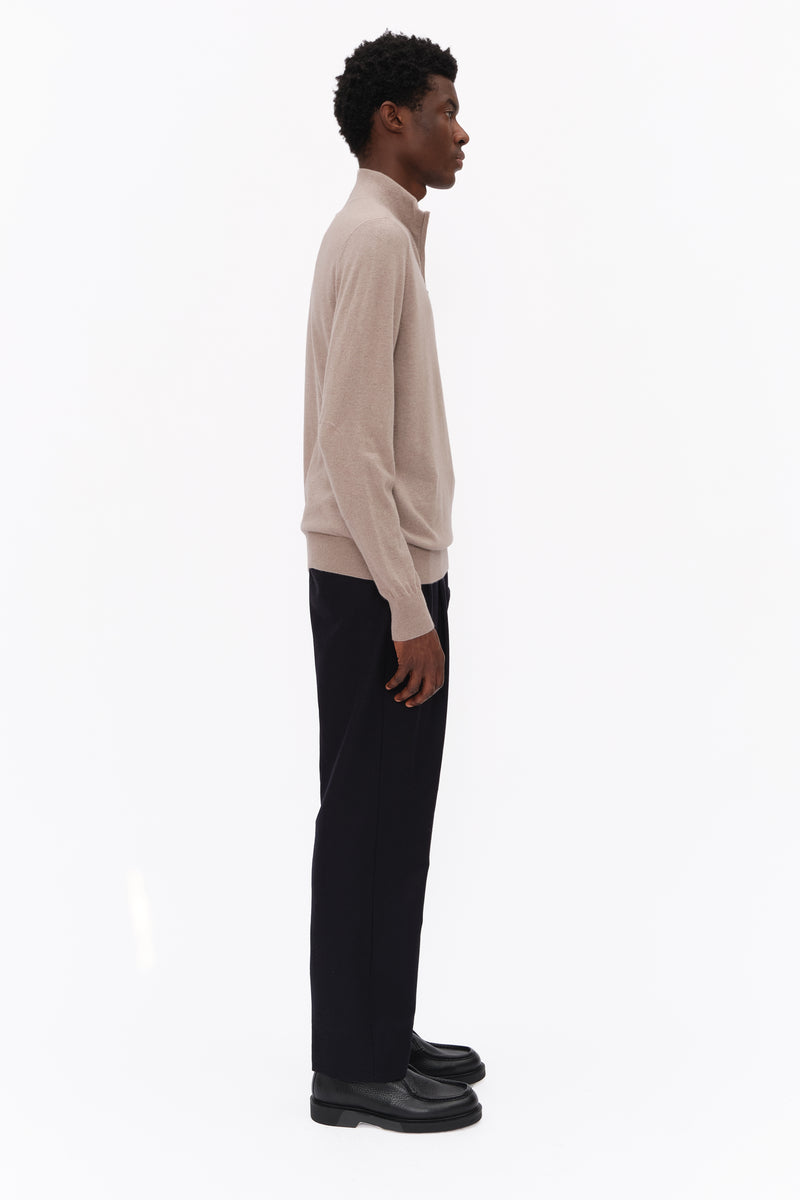This half zip, in luxurious baby goat cashmere, carefully and sustainably selected for its exceptional lightweight softness. With fitted silhouette balanced by elegant long sleeves, perfect for layering or wearing on its own.