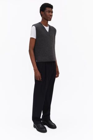 This beautiful full cardigan stitch textured vest, relaxed fit, ribbed v-neck, in luxurious chunky knit cashmere, carefully and sustainably selected for its exceptional lightweight softness. With a loose silhouette balanced by elegant ribbed detailing, this style is perfect for layering through every season.