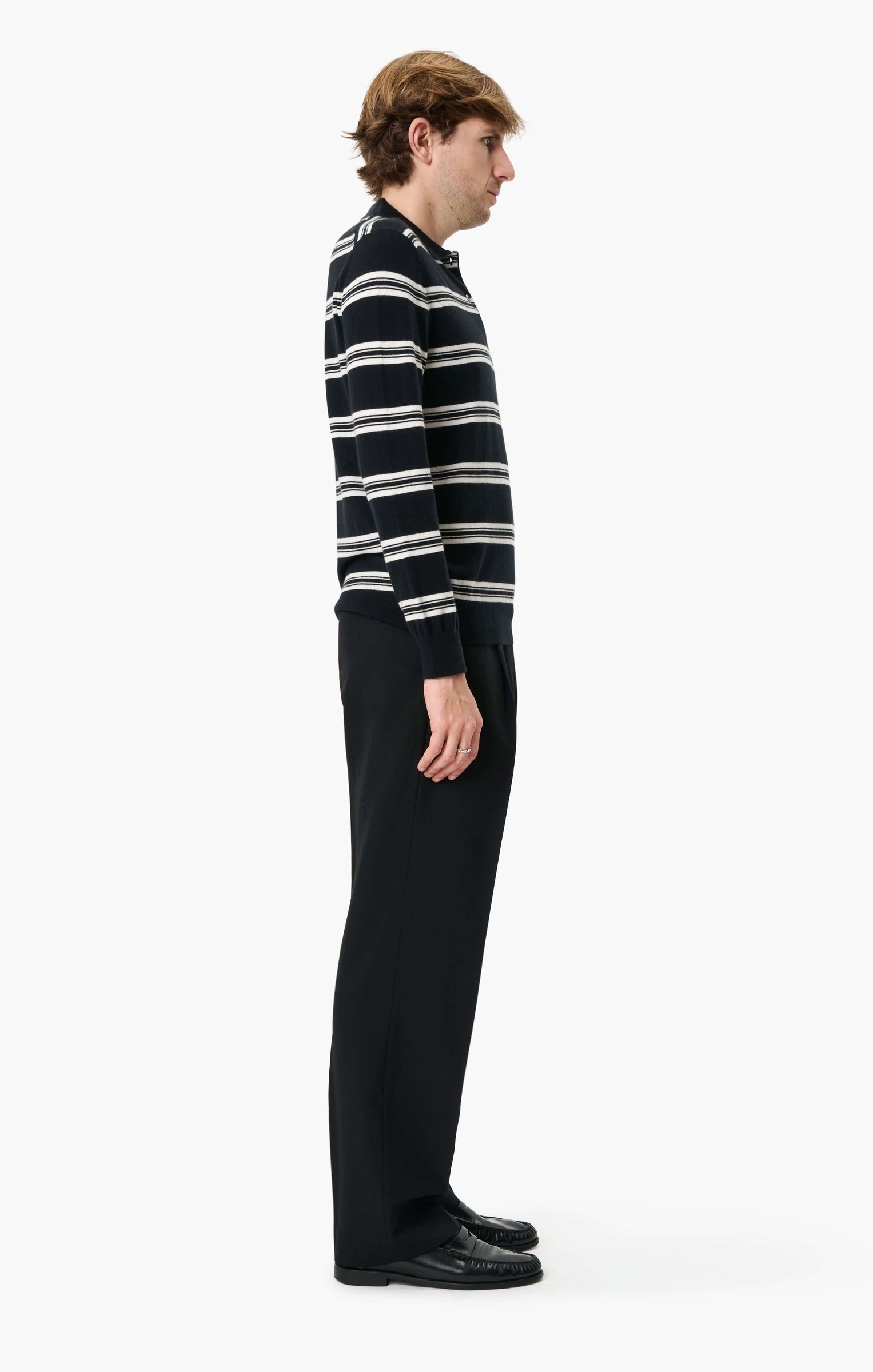 This half button up, classic shirt collar, in luxurious baby goat cashmere, carefully and sustainably selected for its exceptional lightweight softness. With fitted silhouette balanced by elegant long sleeves, perfect for layering or wearing on its own.