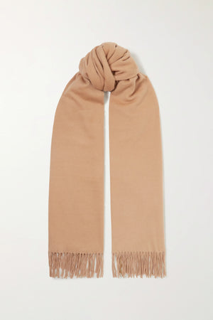 This travel blanket, in luxurious woven knit cashmere, carefully and sustainably selected for its exceptional softness and rich texture. With an oversized feel and edged with extended fringe, this style is perfect to wrap up in the winter, or drape over yourself whilst travelling.