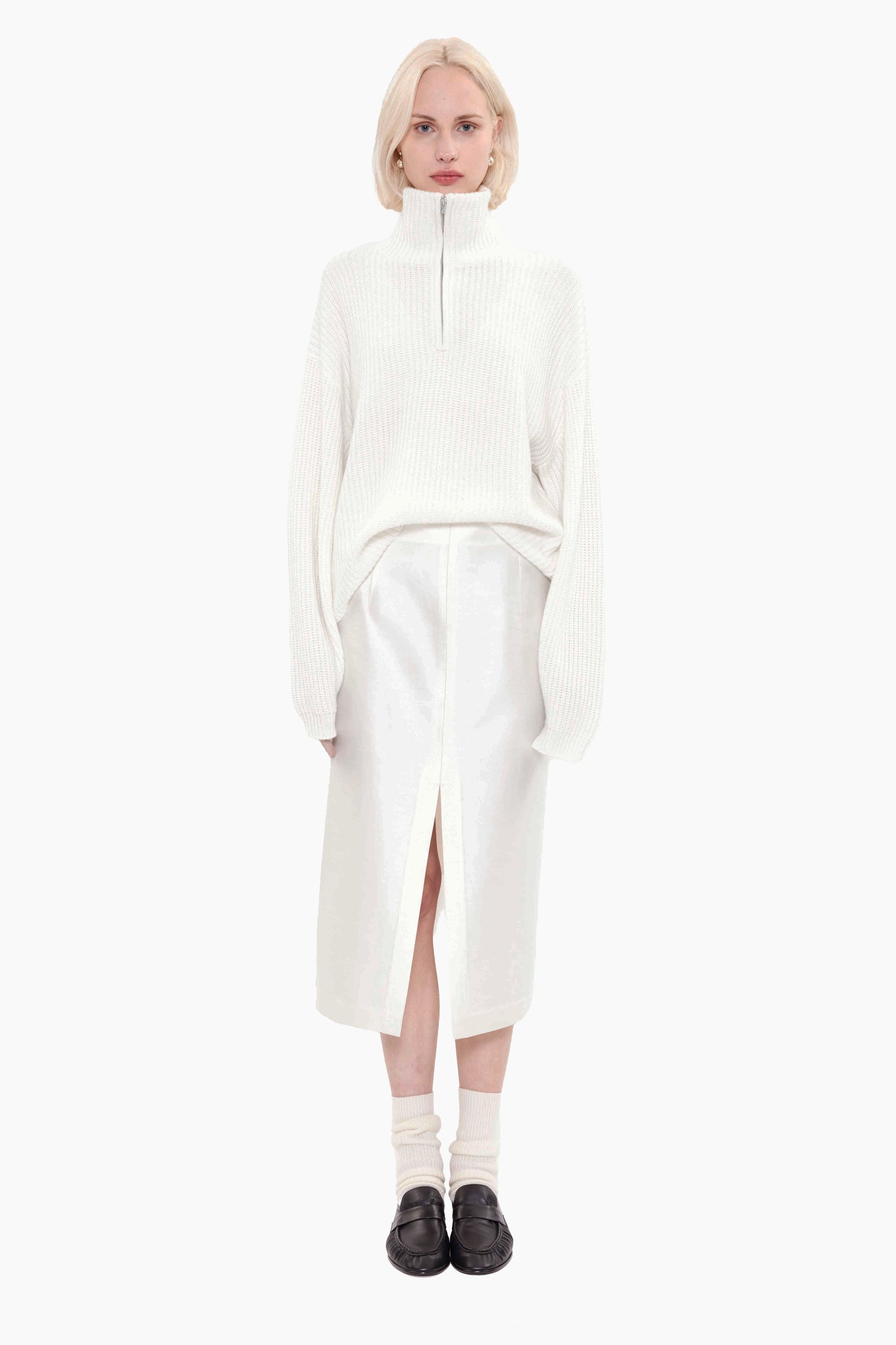 This modern classic jumper features a ribbed stitch texture and a relaxed fit for ultimate comfort. Designed with a stylish 1/3 zip neck, it’s crafted from 100% cashmere for a soft and luxurious feel. A versatile piece that effortlessly combines warmth, style, and sophistication.