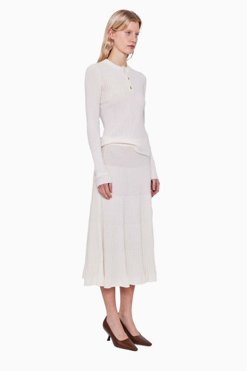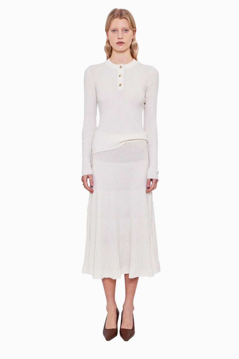 This ribbed baby goat cashmere top is a refined blend of texture and elegance. Featuring a button-down collar, it adds a polished touch to its sleek silhouette. Crafted from luxuriously soft baby goat cashmere, it’s a versatile piece for both casual and sophisticated looks. 100% Baby goat cashmere.