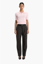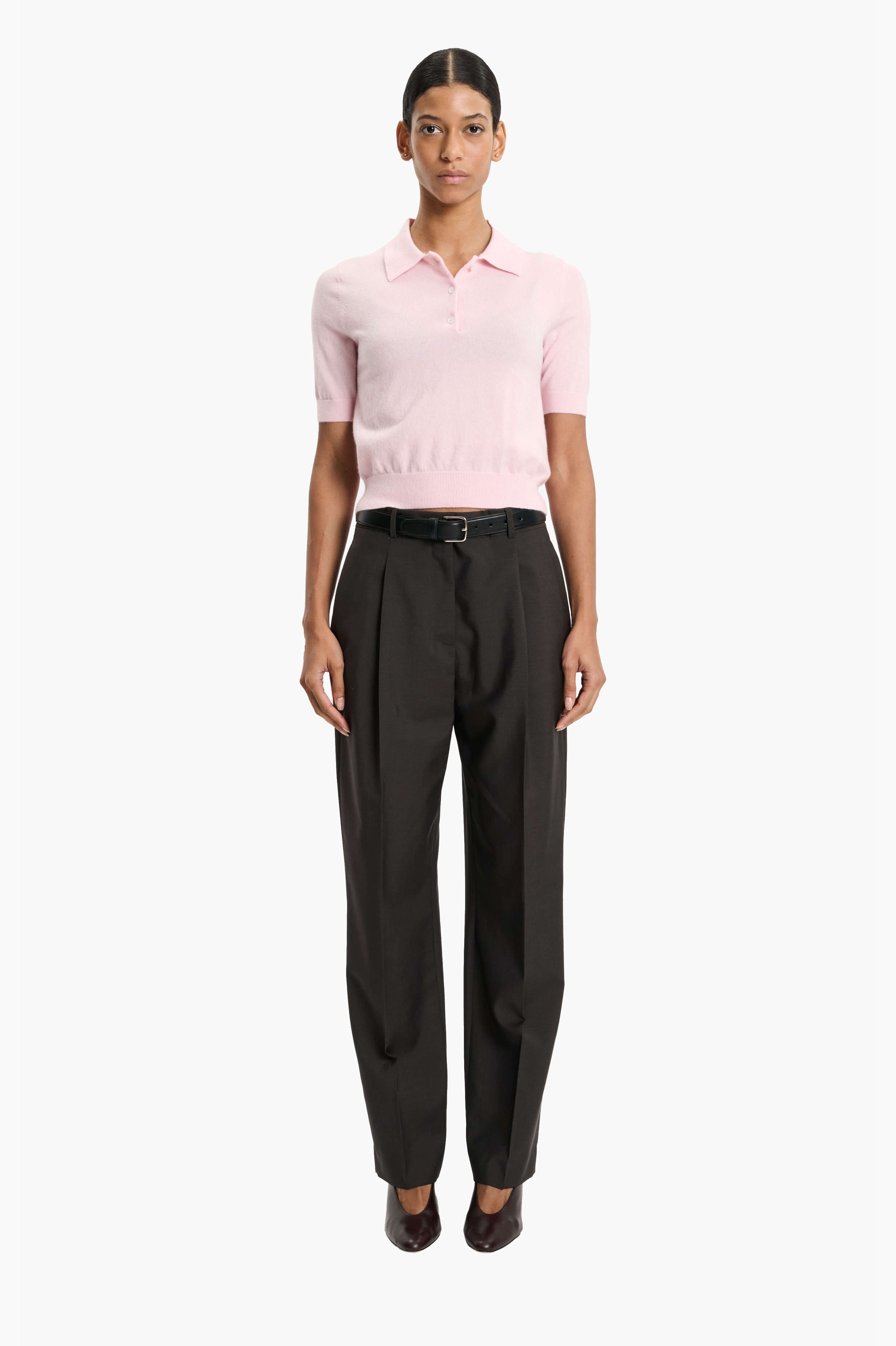 The Octavia Polo Jumper blends classic tailoring with modern ease. Crafted from 100% Baby Goat Cashmere, it features a refined polo collar with a button placket and short sleeves, finished with ribbed trims at the cuffs and hem. With its clean lines and versatile silhouette, this piece offers effortless sophistication—perfect for both casual styling and elevated looks.