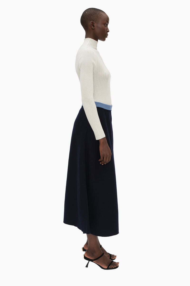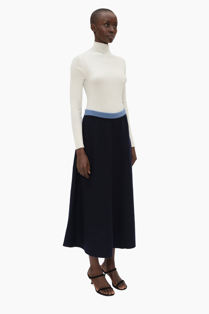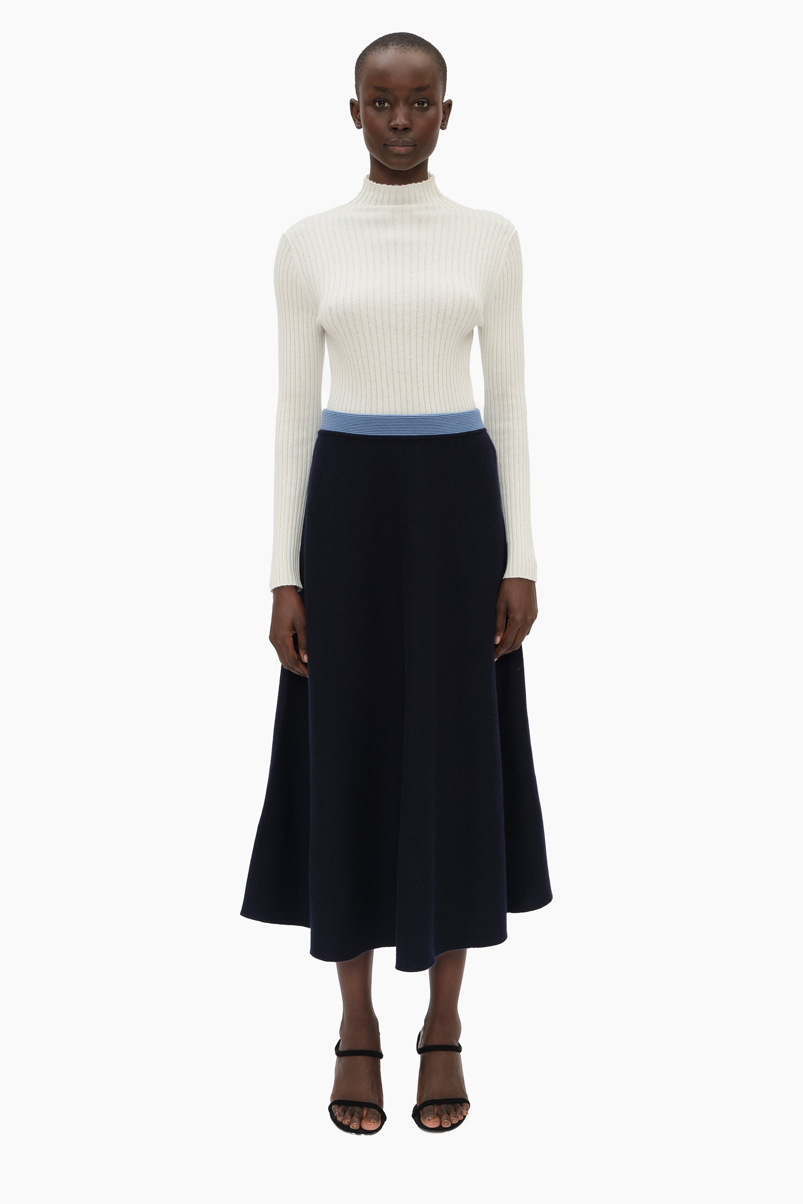 This A-Line skirt, with elasticated waistband in luxurious Milano Knit cashmere, carefully and sustainably selected for its exceptional lightweight softness.