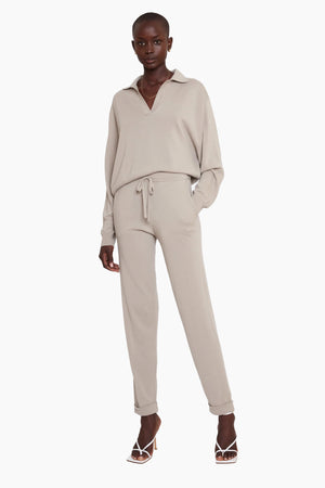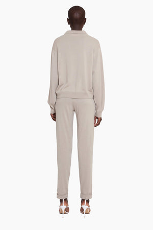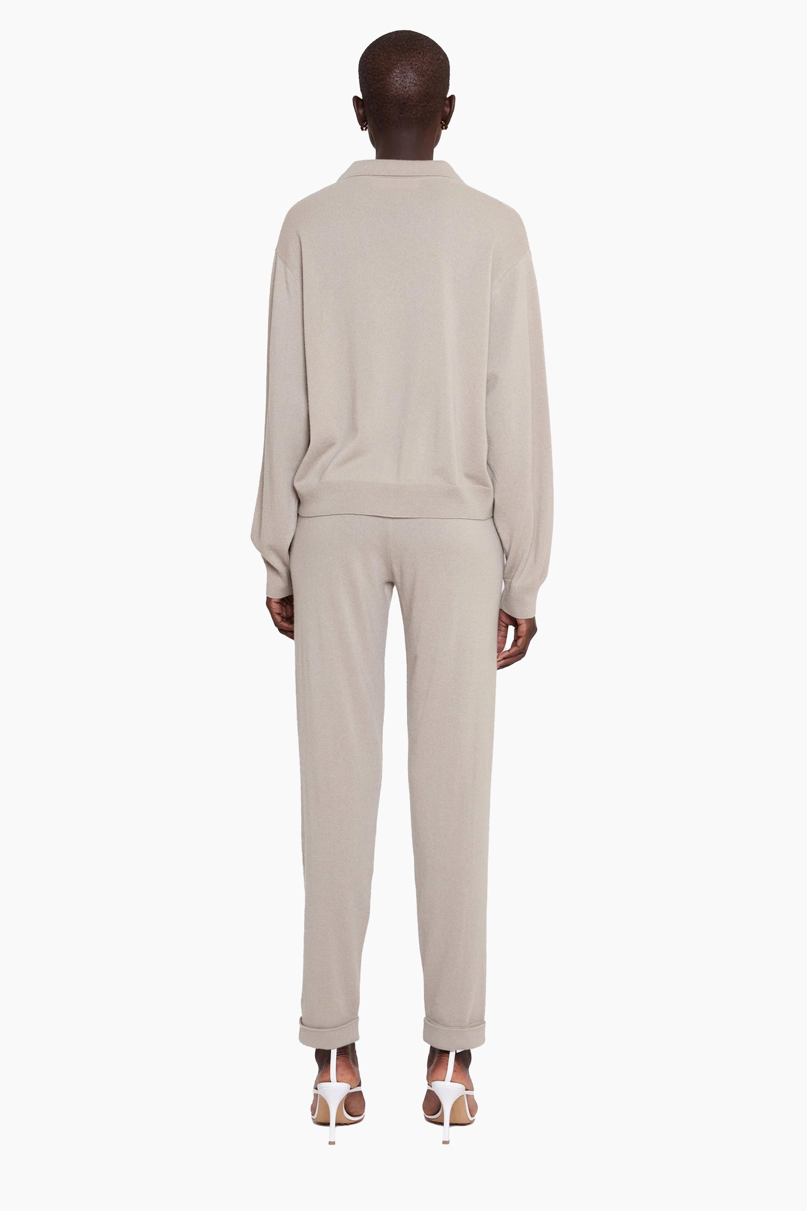 This V-neck collared jumper, in luxurious baby goat cashmere, has been carefully and sustainably selected for its exceptional lightweight softness. Featuring fully fashioned seams with a relaxed cropped silhouette balanced by beautiful drop shoulder sleeves, an oversized collar and refined by ribbed cuffs and hem.