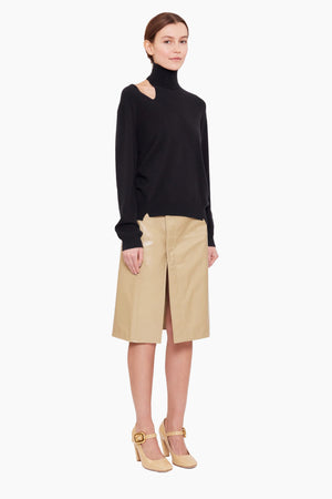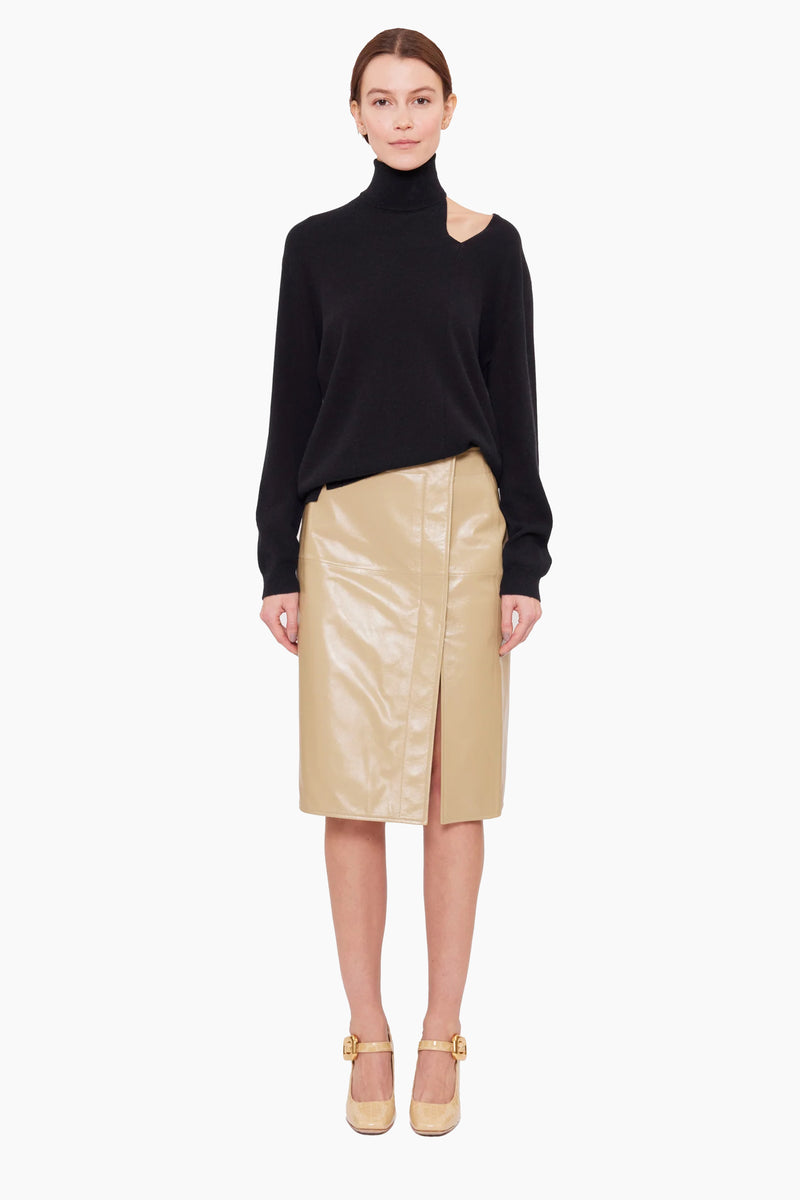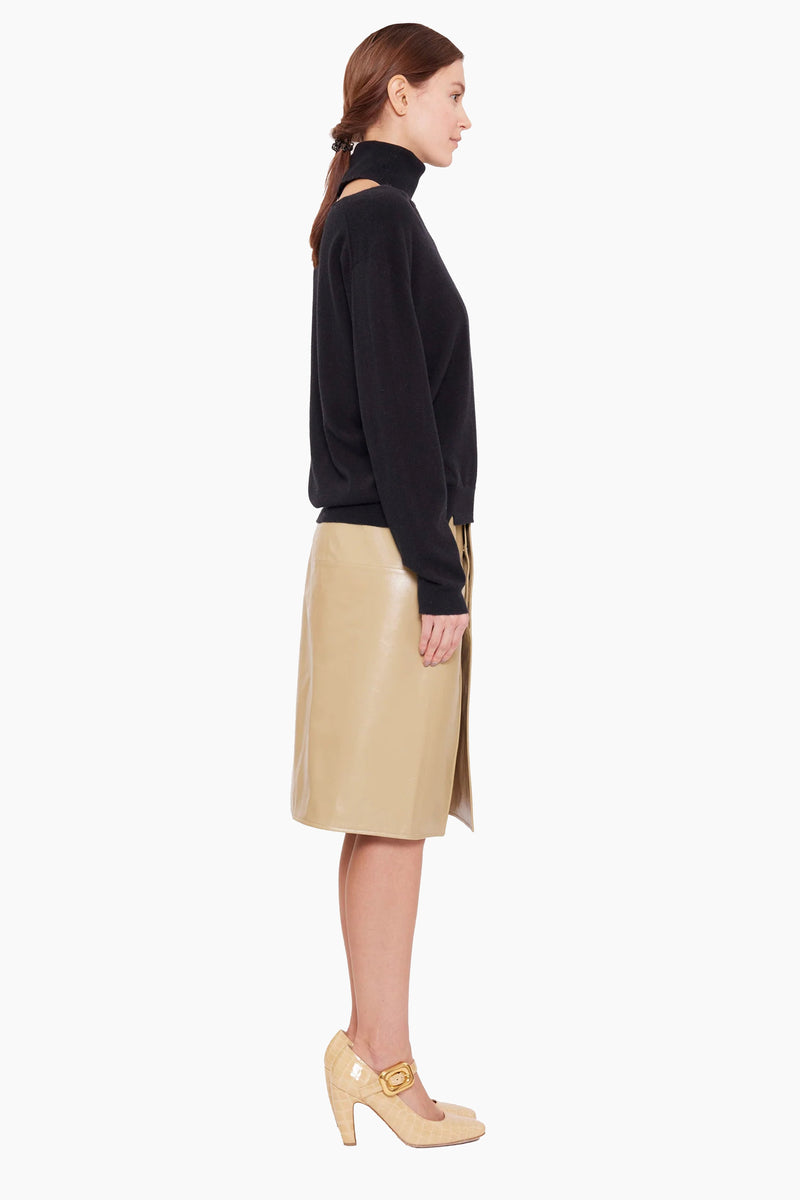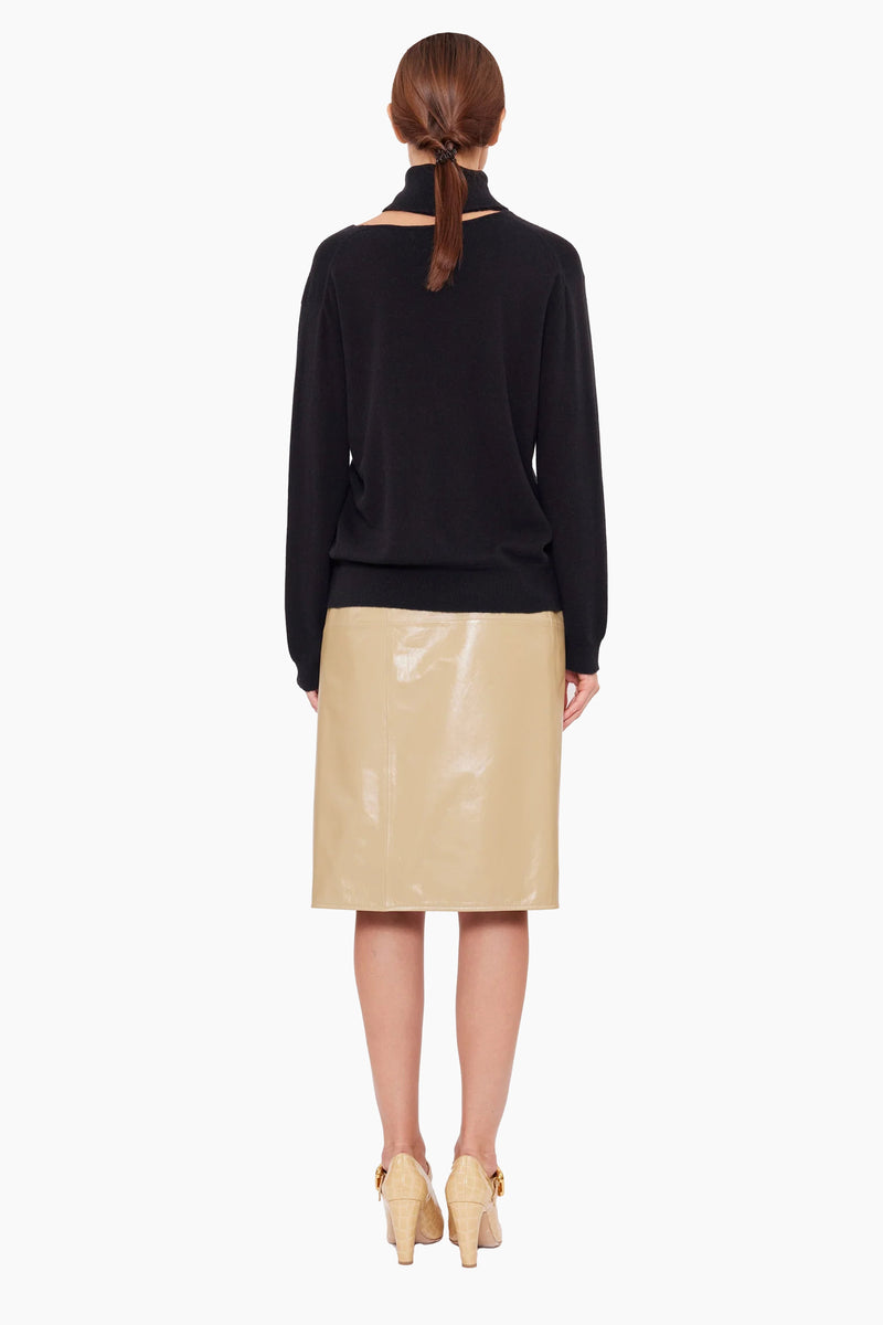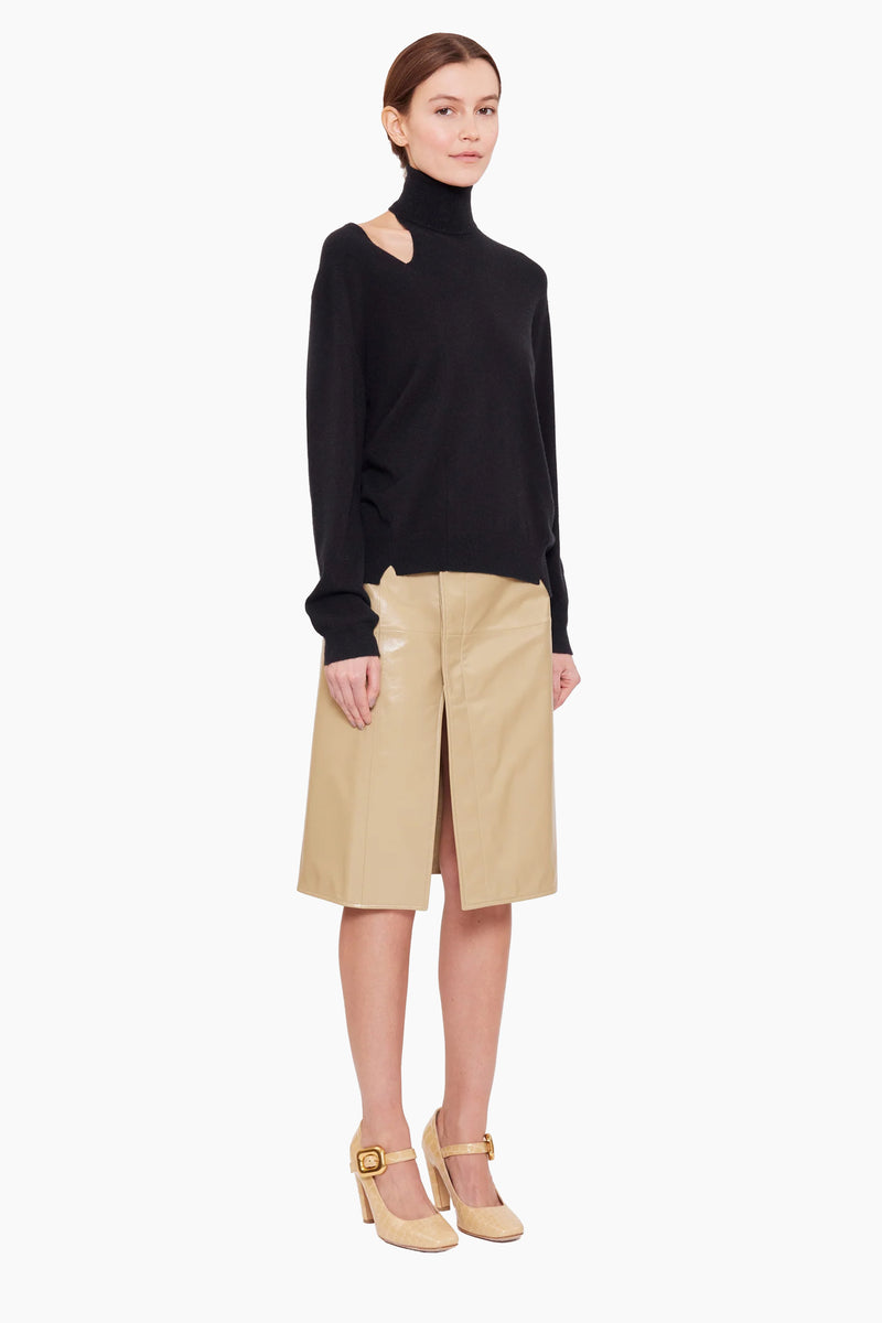 This baby goat cashmere jumper offers a modern twist on timeless elegance. Featuring a high neck and a subtle shoulder cut-out, it adds a touch of intrigue to its classic silhouette. Made from 100% baby goat cashmere, it’s irresistibly soft and effortlessly chic.