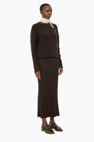 The Raelyn Ribbed Maxi Skirt combines timeless elegance with luxurious comfort. Made from 100% cashmere, it features a ribbed texture and a flattering maxi-length silhouette. Soft, cozy, and versatile, it transitions effortlessly from casual daywear to elevated evening looks.