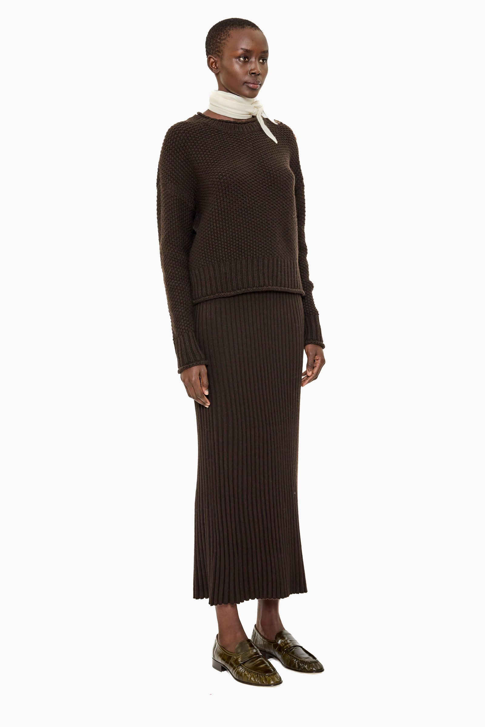 The Raelyn Ribbed Maxi Skirt combines timeless elegance with luxurious comfort. Made from 100% cashmere, it features a ribbed texture and a flattering maxi-length silhouette. Soft, cozy, and versatile, it transitions effortlessly from casual daywear to elevated evening looks