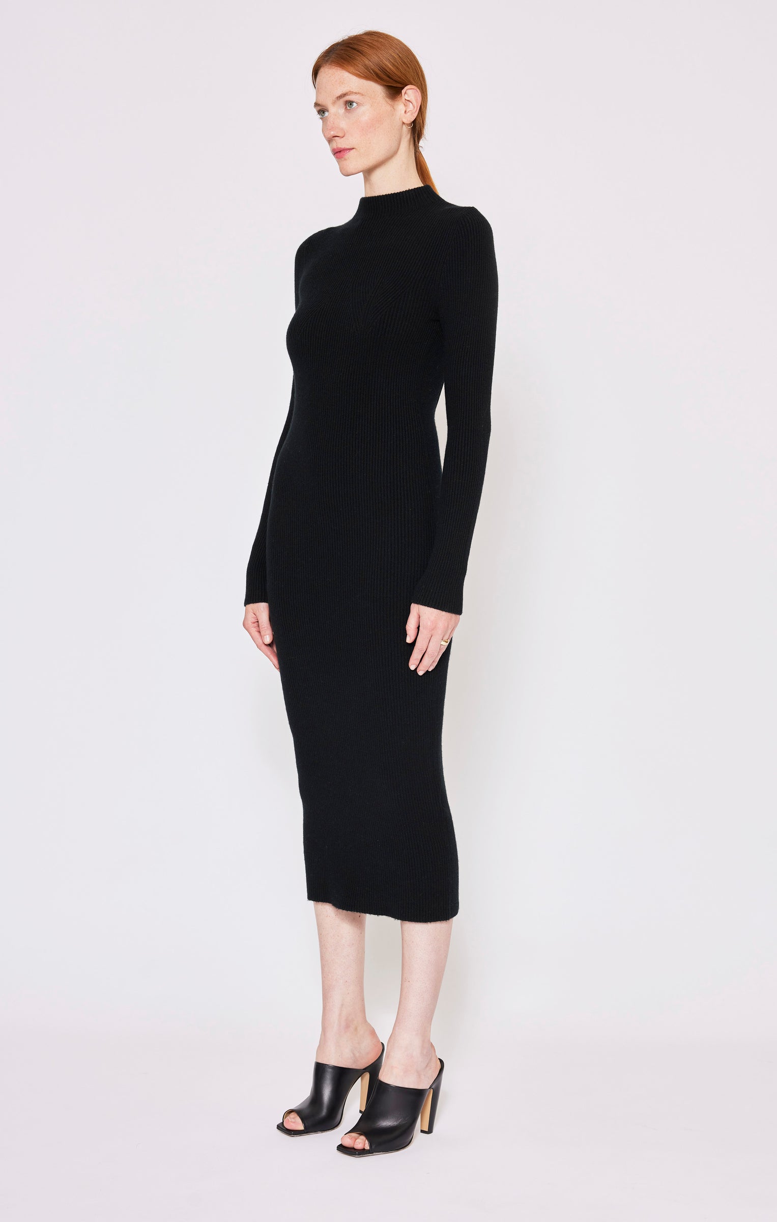 This unique long sleeve dress, highlighted by a flattering open back, in luxurious stretchy knit cashmere, carefully and sustainably selected for its exceptional stretch and fabric recovery. Featuring fully fashioned seams and bust detail, with a refined sexy, but elegant silhouette.