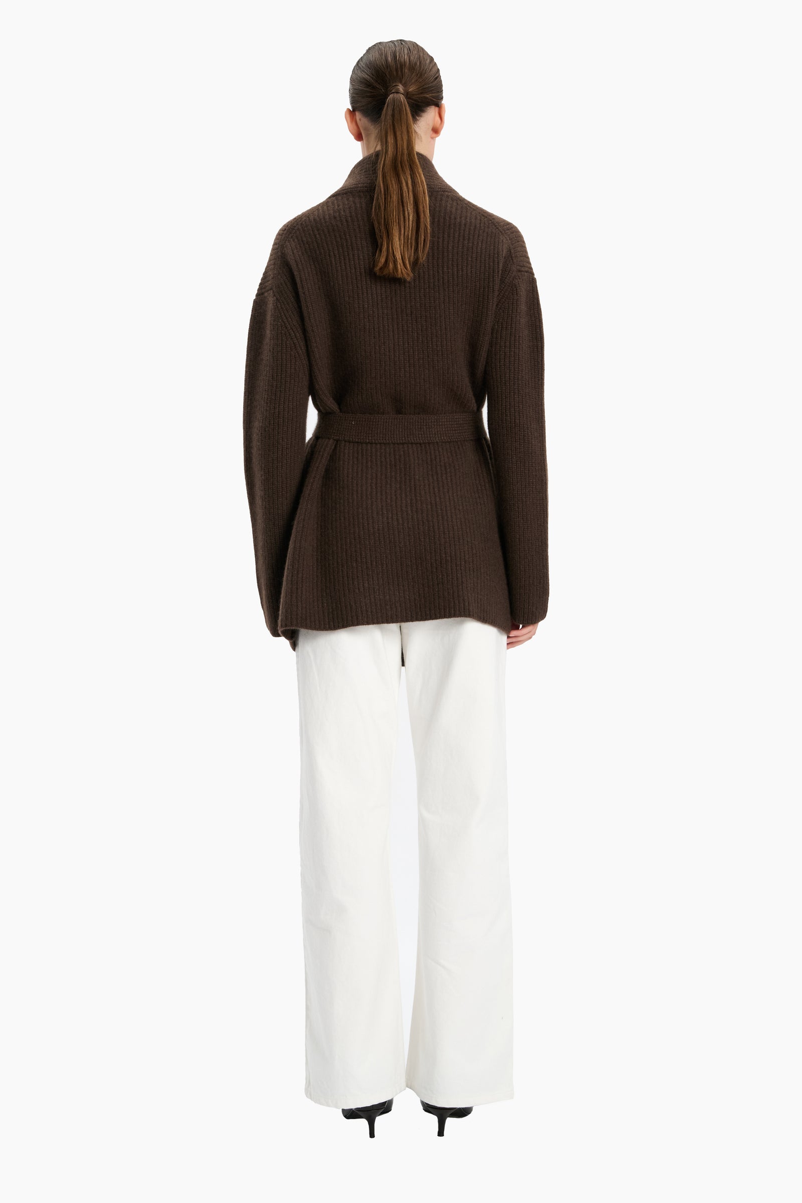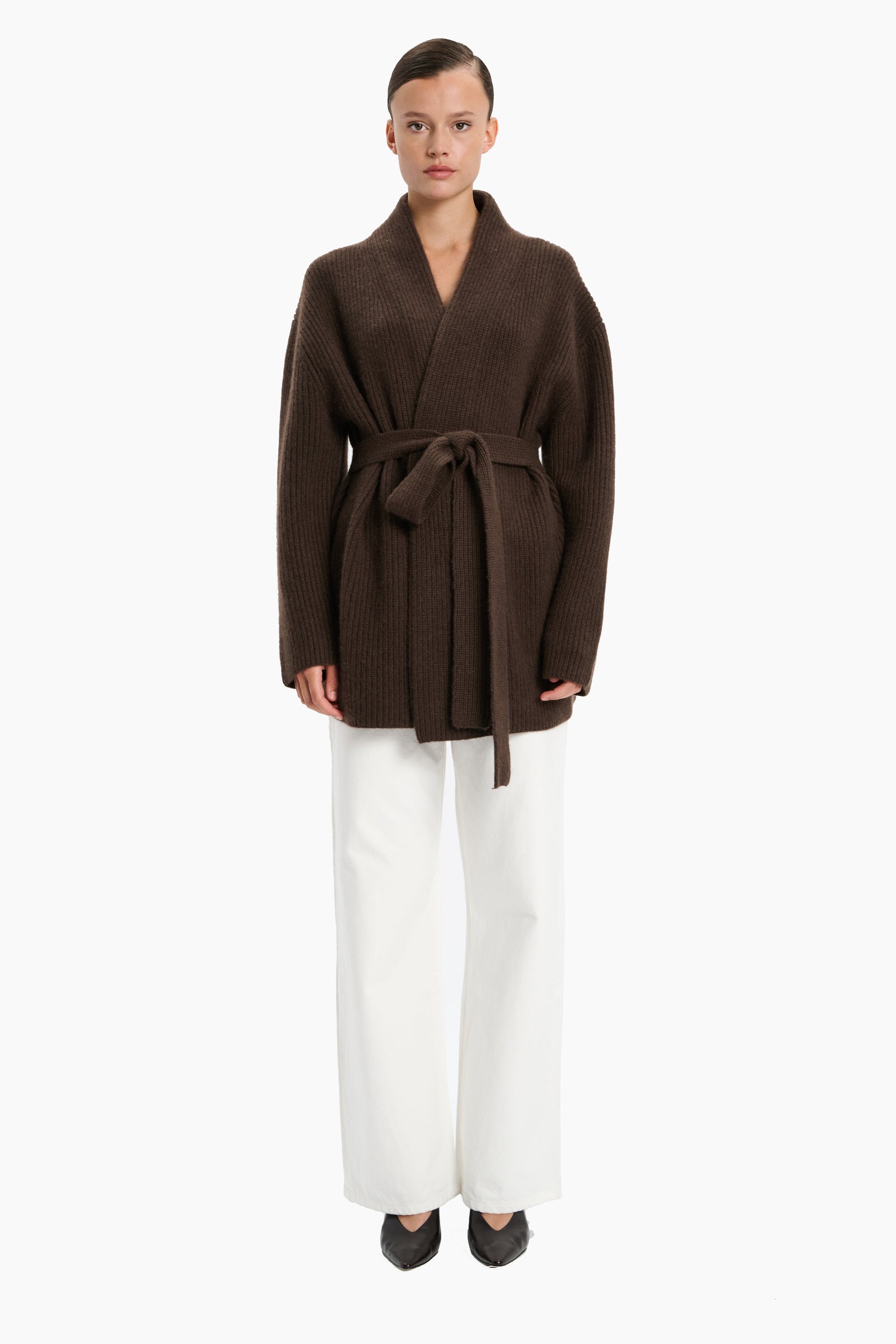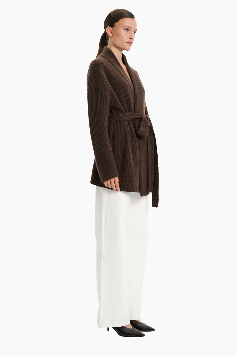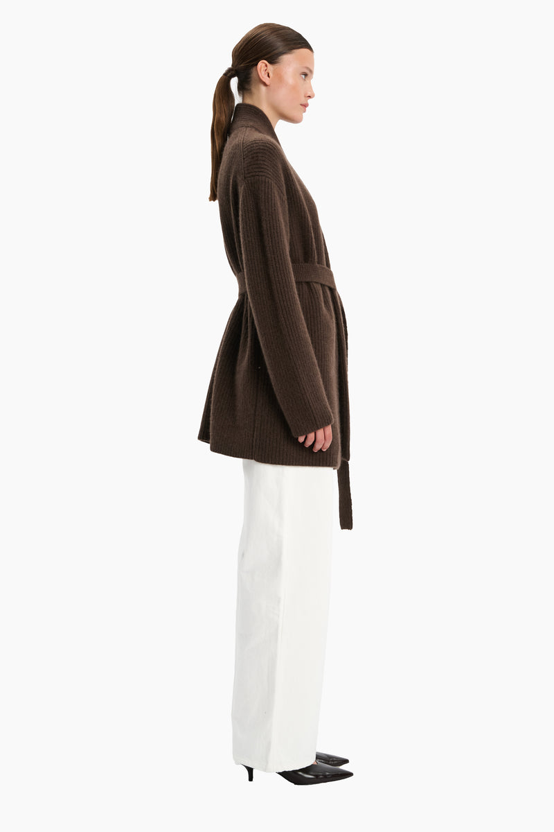 The Sasha Wide Ribbed Cardigan combines timeless elegance with luxurious comfort. Crafted from 100% cashmere, it features a refined wide-ribbed texture that adds depth and sophistication. Designed with a relaxed silhouette and finished with a matching belt, this cardigan offers versatile styling—wear it open for effortless layering or cinched at the waist for a more defined look.