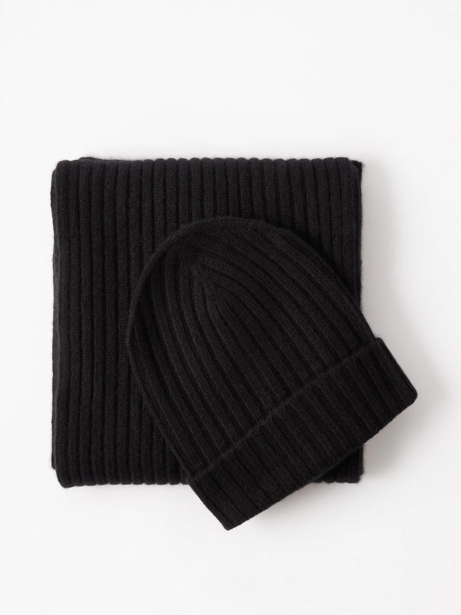 This textured hat and scarf set, in heavy weight luxurious chunky knit cashmere, carefully and sustainably selected for its exceptional softness and rich texture. Featuring fully fashioned seams and a flattering hem turn up.