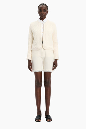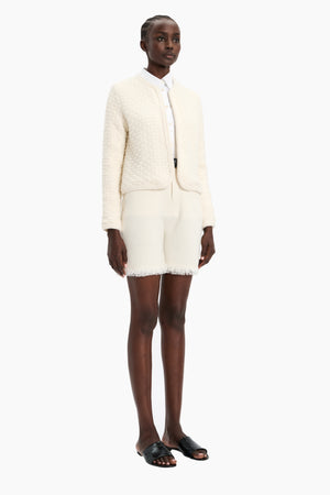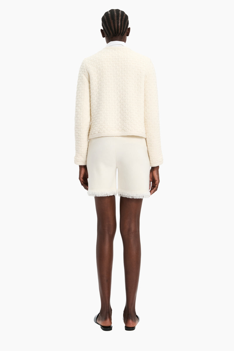 The Tweed Textured Knit Crew Neck Cardigan blends classic tailoring with luxurious comfort. Made from 100% cashmere, it features a textured tweed knit, a crew neckline, and a structured yet relaxed silhouette. Soft, warm, and versatile, it’s perfect for layering over casual or polished outfits.