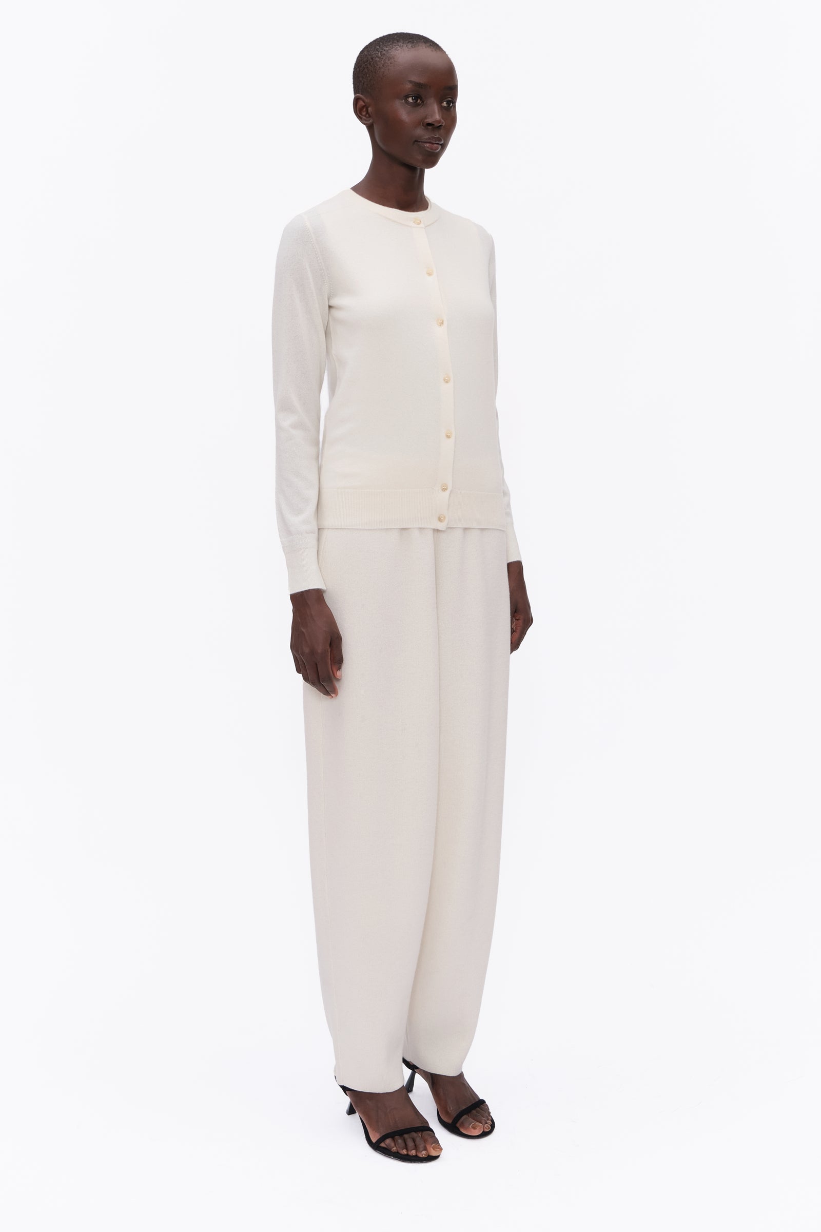 This baby goat cashmere cardigan is a timeless addition to your wardrobe and part of a perfectly coordinated twinset. Crafted with care from 100% baby goat cashmere, it offers unmatched softness and a refined fit. Wear it alone or pair it with its matching piece 'Alessandra' for effortless elegance.