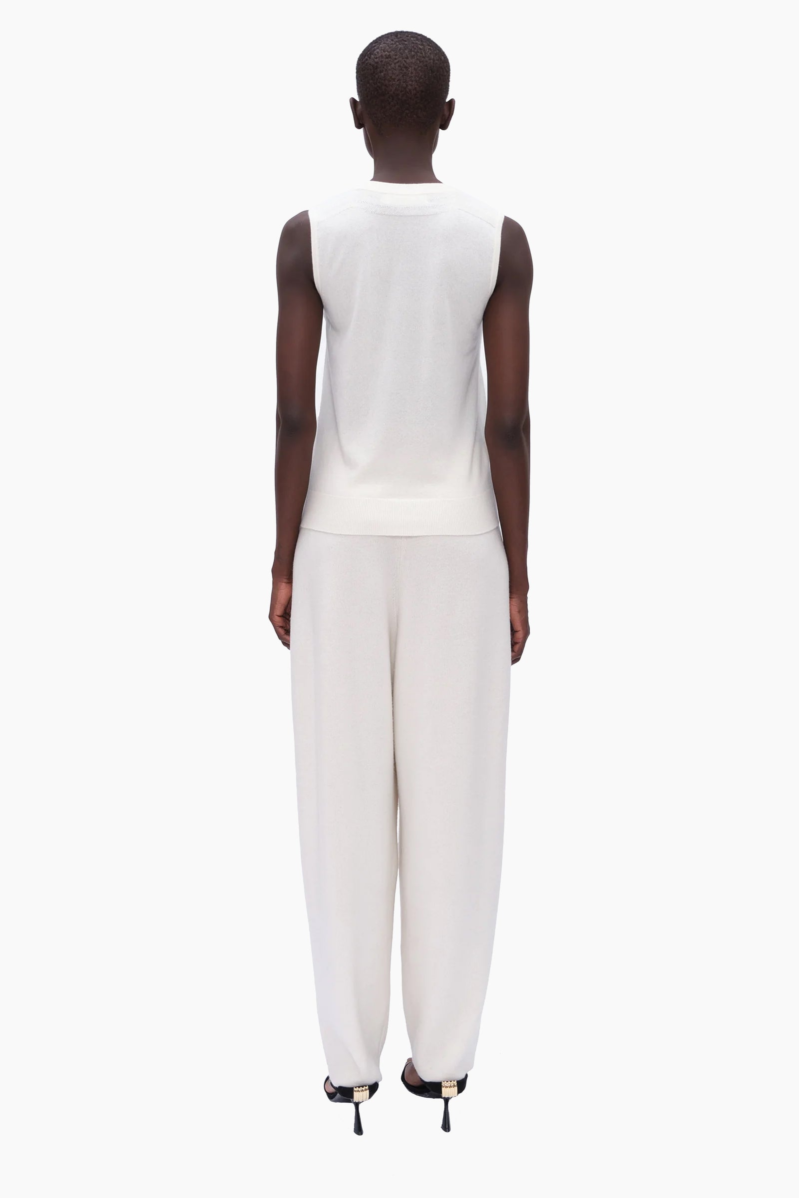 This baby goat cashmere vest is a refined staple, perfect for layering or wearing alone. Its timeless silhouette pairs effortlessly with the matching cardigan 'Nappa' for a coordinated twinset look. Crafted from 100% baby goat cashmere, it offers exceptional softness and understated elegance.