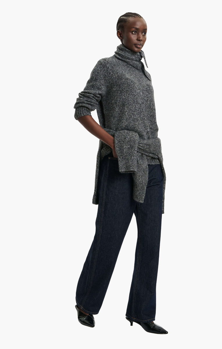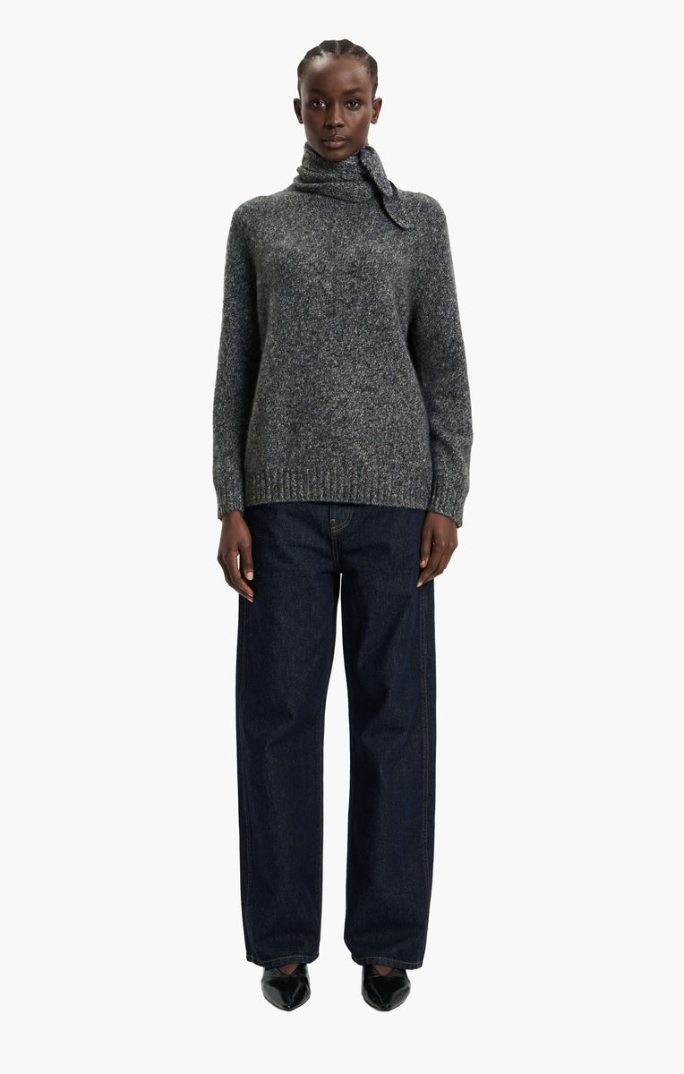 The Verona Relaxed Mock Neck Jumper with Scarf blends luxurious comfort with refined style. Made from a blend of 75% cashmere and 25% silk, it features a relaxed fit, soft marl yarn, a mock neck, and an attached scarf for added elegance. Perfect for layering or wearing on its own, it’s a versatile wardrobe essential.